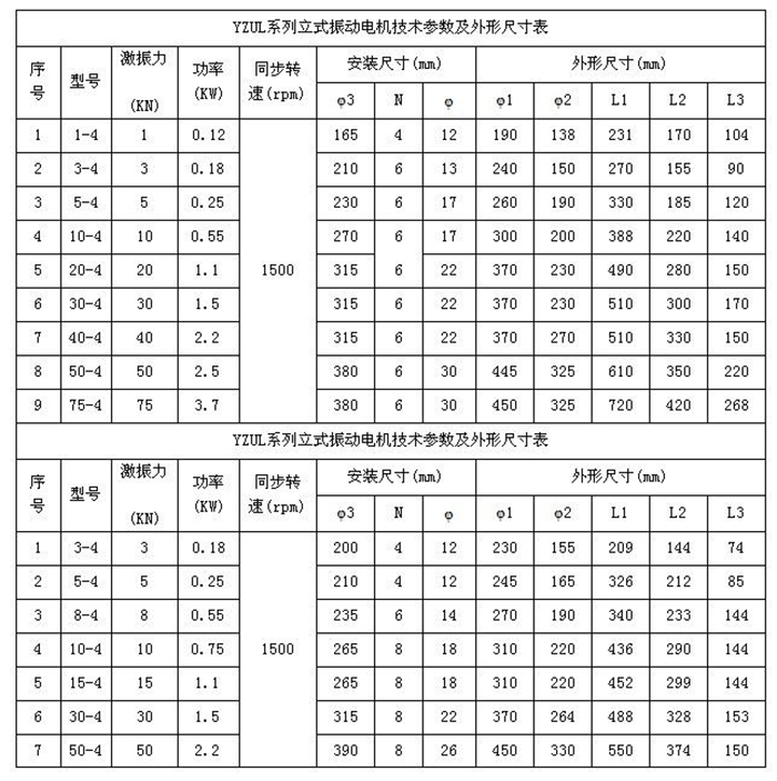 YZUL型立式振動電機是動力源與振動源結合為一體的激振源,振動電機是在轉子軸兩端各安裝一組可調偏心塊,利用軸及偏心塊高速旋轉產生的離心力得到激振力。由電機本身運行產生易于調整的水平、垂直、傾斜等方向多元激振力,形成物料的快速平面分散、中心聚集、平面旋轉、三維旋轉等多種運動方式,用于控制排料速度、處理精度等機械性能指標,以其獨特的結構特點適應于不同的機械對振動源的要求。